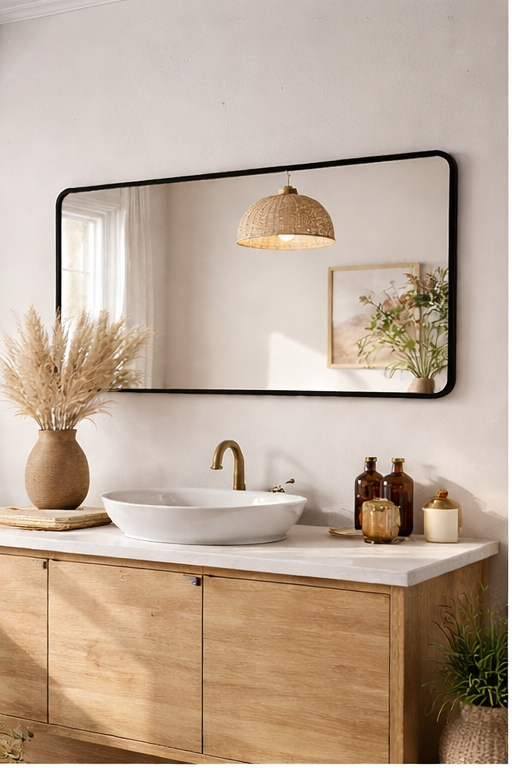 Available in multiple sizes and shapes, this sleek mirror fits effortlessly in bathrooms, bedrooms, and beyond. The ultra-thin aluminum frame adds a clean, modern look, while the HD silver glass delivers a crisp, true-to-life reflection with reduced fogging. Built to last with a moisture-resistant finish, and easy to hang vertically or horizontally with included hardware. Securely packaged for safe delivery.